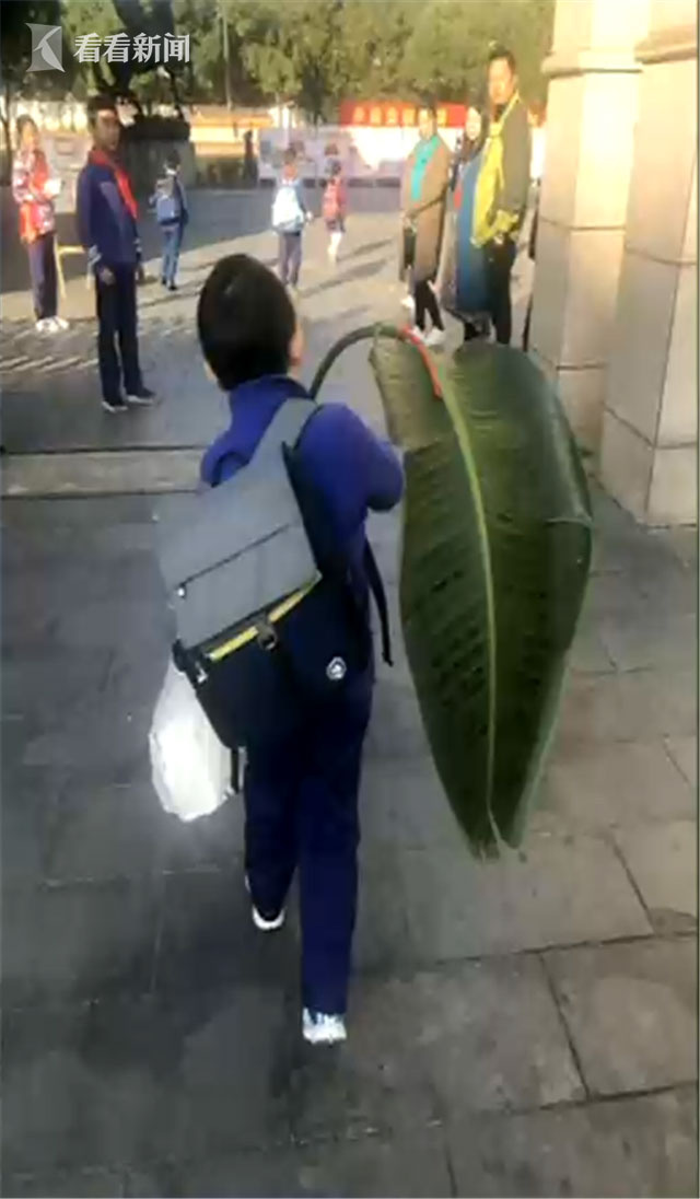 老师让带小鱼到学校观察,结果一位小朋友带了一条草鱼;老师让带肉肉,结果一位小朋友却带了一块五花肉。想必这两张照片,大家应该都在网络上见过。这次又出现了这样一位可爱的小朋友,还刷爆了大家的朋友圈。原来,在某学校的一次课外能力提升作业中,老师要求大家在树叶上写上刚学的汉语拼音,有位小朋友却扛着一片芭蕉叶来交作业,而这一幕正好被学生家长拍到。经过一番打听,这位小朋友是一名一年级的学生。