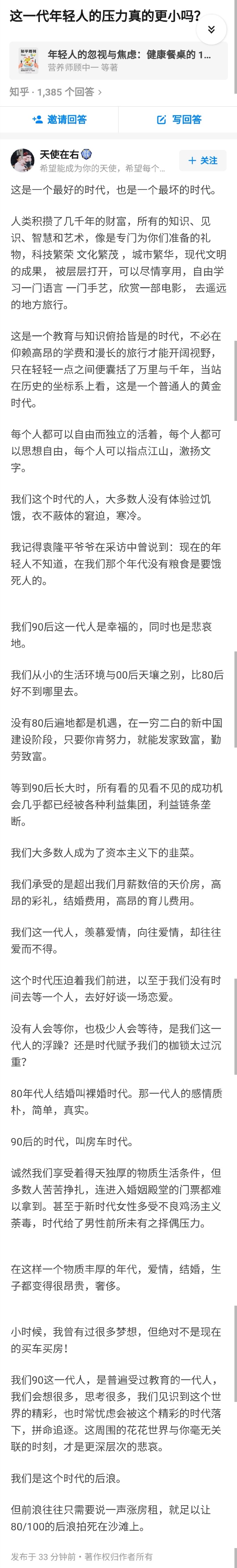 提问:我们总是听见老一代的人说:你们哪里有我们苦啊?你们现在多幸福啊怎么就有压力了?