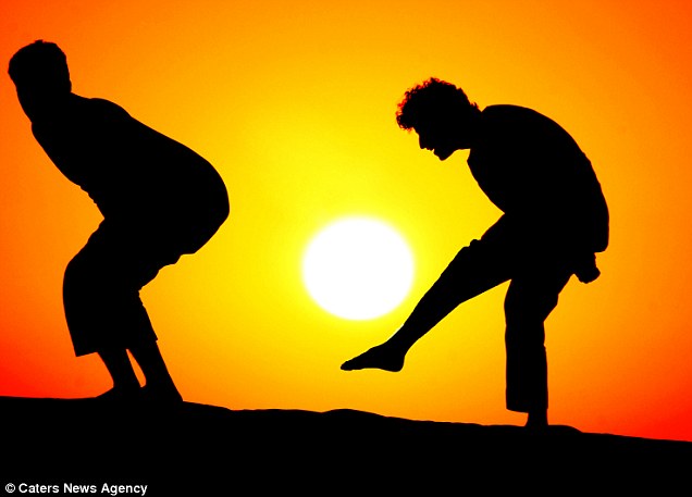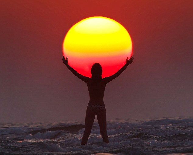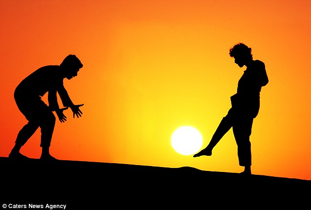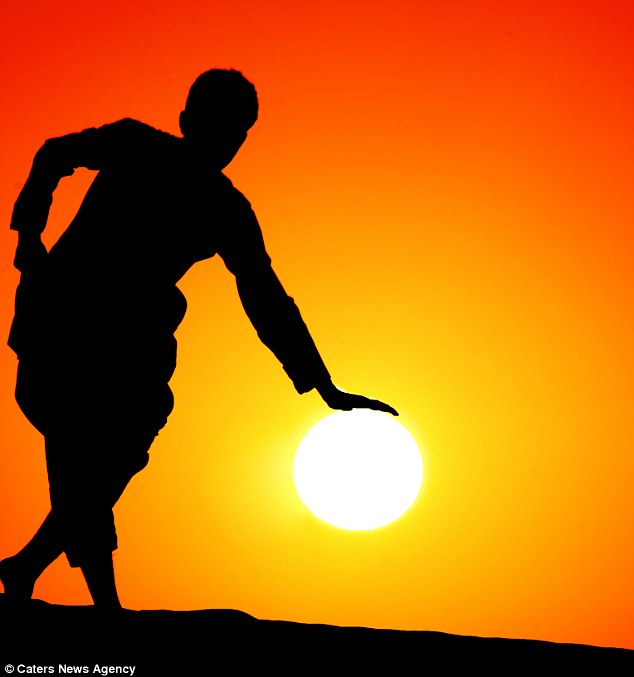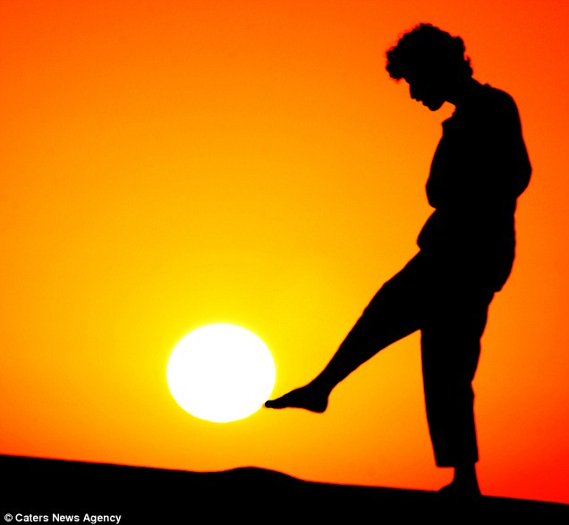 据英国《每日邮报》报道,2012年1月,23岁的沙特阿拉伯业余摄影师Malek Hammoud Tuwaijri拍摄了一组惊人的图片。在这组图片里,一名妇女“撑起”了太阳,还有两个男孩把太阳“当足球踢”。