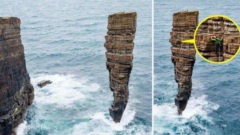 惊心动魄!攀岩爱好者征服两百米高礁石