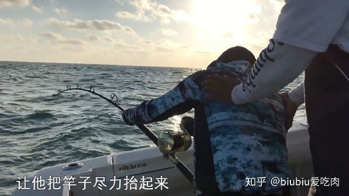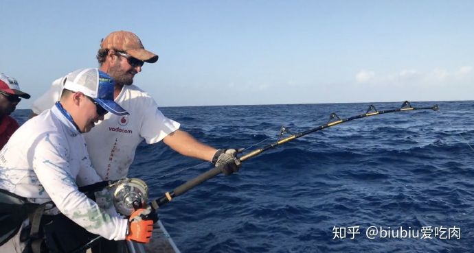 所以用风筝把小鱼挂在风筝上,小鱼基本就在水面上飘着,金枪鱼看到不鱼线就会去吃小鱼