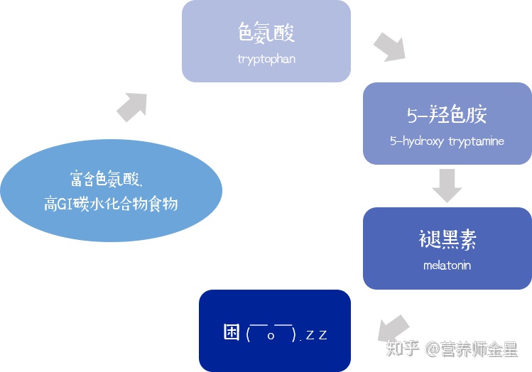 尤其是血糖生成指数(GI)较高的食物,比如白米饭、白面条、高糖的水果、奶茶等,会刺激胰岛素分泌,让那些与色氨酸竞争,试图通过血脑屏障进入大脑的其它氨基酸离开血液进入肌肉细胞,从而让血液中的色氨酸浓度增加,导致大脑中 5- 羟色胺增多,它可以制造褪黑素,让人产生浓浓的困意。