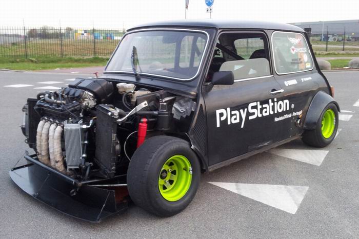 r1发动机排量只有998cc,在摩托车上整车重量远不及汽车,才能跑出近300km的时速。改装成在mini上就变成和奇瑞qq类似的情况,不知道有什么效果~