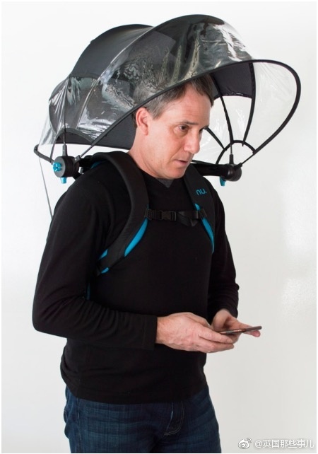 波士顿一家公司推出“革命性的可穿戴雨伞”,号称可以在雨天完全解放双手,妈妈再也不用担心你一手撑伞一手玩手机拍照踩单车会有危险啦