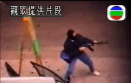 1993年旺角弥敦道持枪劫案,当时参与的悍匪包括叶继欢。(无线电视及YouTube截图)
