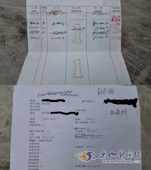 随后,记者跟随李大爷来到开户行五通桥支行,目睹了查询工作的进展。