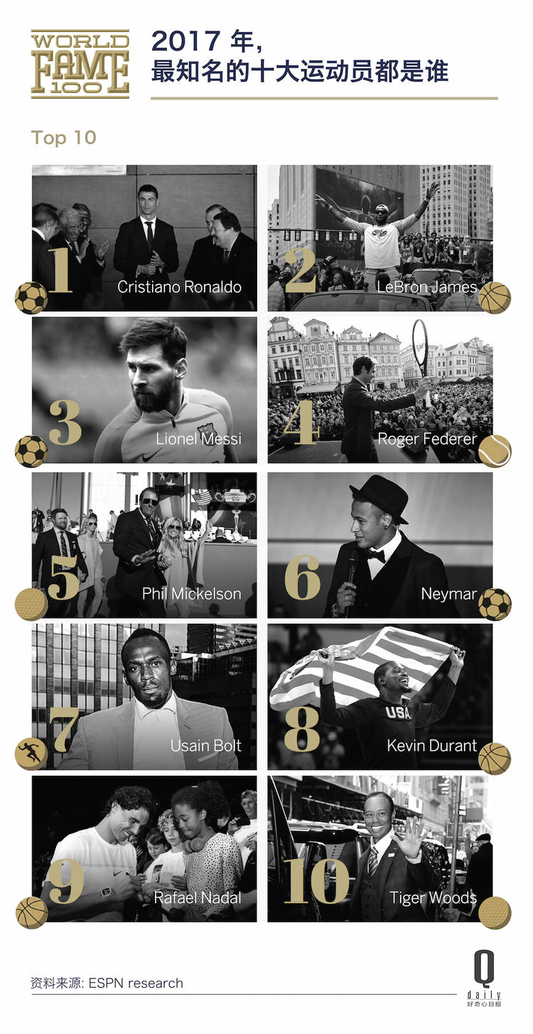 这个星球上最有名的十个运动员是……?