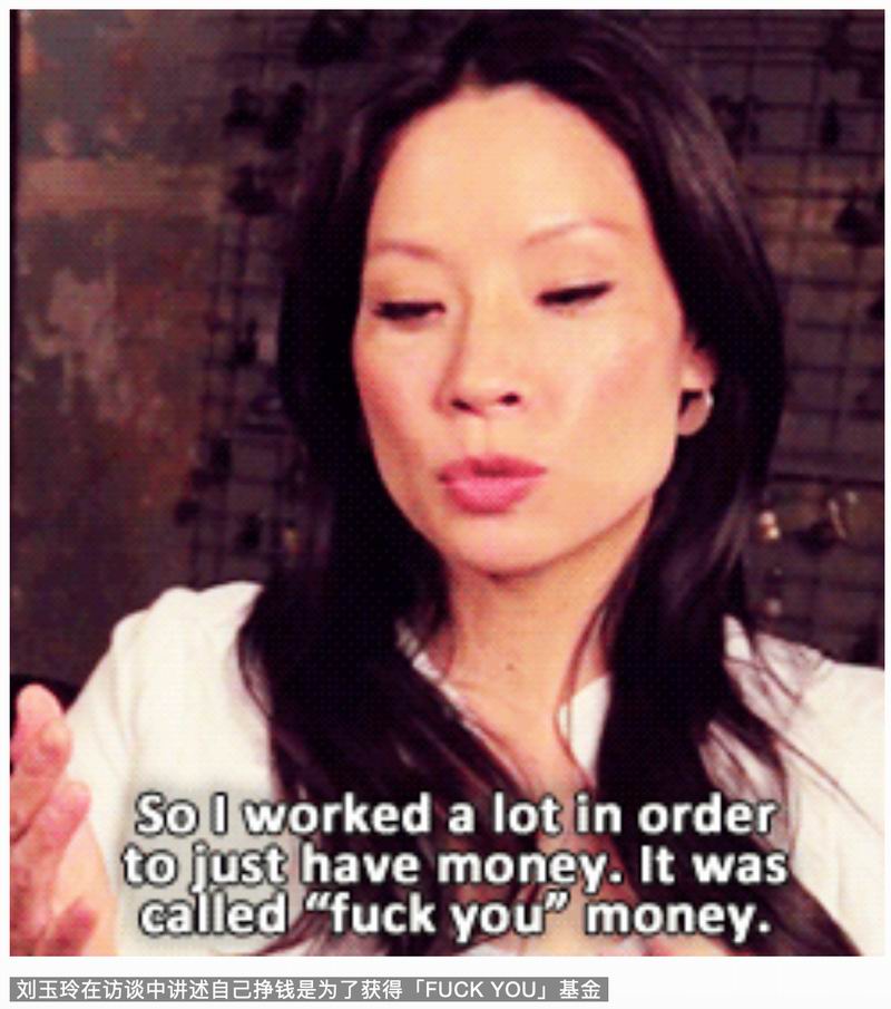 「所以我工作后很努力地存钱。我称它们为『FUCK.YOU』基金。如果你有了这笔钱,当有什么意外发生,或者有人强迫你、辞退你的时候,你可以像这样说:FUCK.YOU。」
