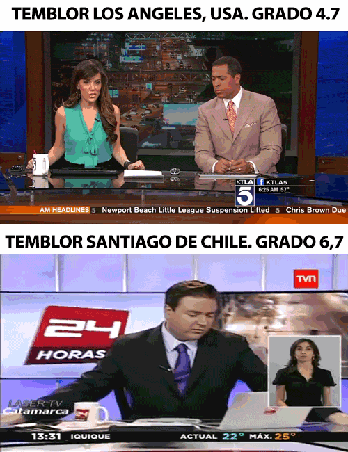 地震中 米国主持人Vs智利主持人