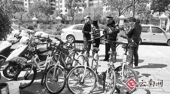 民警蒋朝东介绍,当天下午,民警巡逻时发现两个男孩在破坏永安行的共享单车,一个男孩在撬单车上的密码锁,他们就上前询问。不问不知道,一问吓一跳,两男孩交代他们不是第一次破坏共享单车了,而且家里有好几辆共享单车。