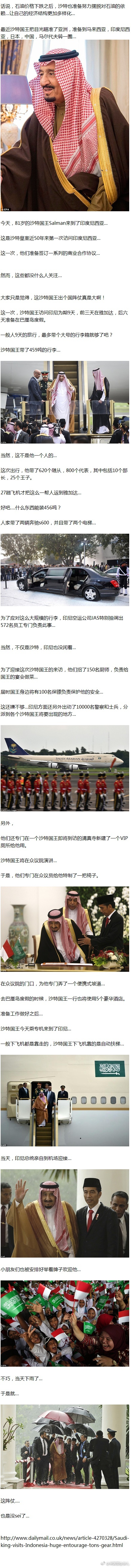 沙特国王出个国...带了456吨的行李...1420个随行人员...连自动扶梯都要自己带..... 这.. 也是够-。