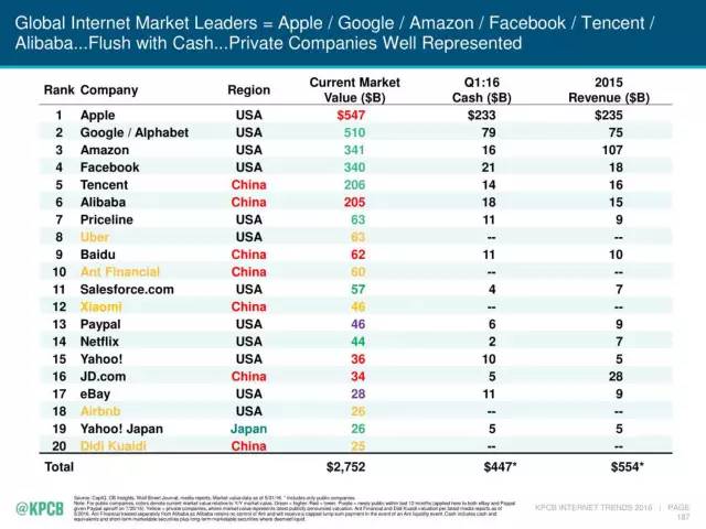 全球互联网市场领导者(来自KPCB)