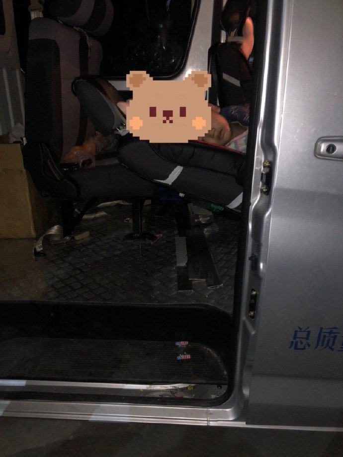 @自我的SZ:昨晚12点,我正倚在车头在工厂大院欣赏难的一见的月圆之夜。进来了一辆货拉拉停在我的边上,侧门拉开,副驾驶位绑着一个三四岁的小孩正在熟睡中。