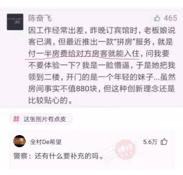 原帖由 Guest from 150.60.57.x 于 2020-5-13 14:57 发表 警察同志我们只是拼房的,我没给妹子一分钱啊啊[3]