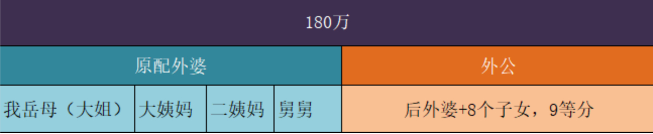 我岳母这边的四个兄弟姐妹认为,原配外婆应该有这房子的一半,这一半应该先分给原配的4个子女,然后剩下的那一半,再由后外婆+8个子女均分。