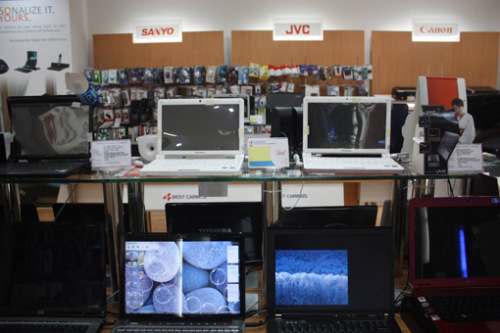 这就是联想的微型笔记本电脑-大号的笔记本电脑是日本产品的天下,这种超小型的笔记本就只有联想的产品了.记得六年前来越南的时候还能在电器商店里见到专卖中国家店的柜台-尽管那柜台位于不起眼的一个小小的角落,但毕竟还有咱的一席之地,六年后的今天连那仅有的柜台也不见了,代之以的是唯一的一台中国产电视机;好在因为看到了联想电脑,且摆放在了最显眼的位置,说实话心里还算找到了那么一点安慰吧.不过据说中国产的摩托车早在几年前就已经在越南等国全军覆没了-唯一能让咱自嘲的就是摩托车的头盔咱们尚占据着半壁江山吧.