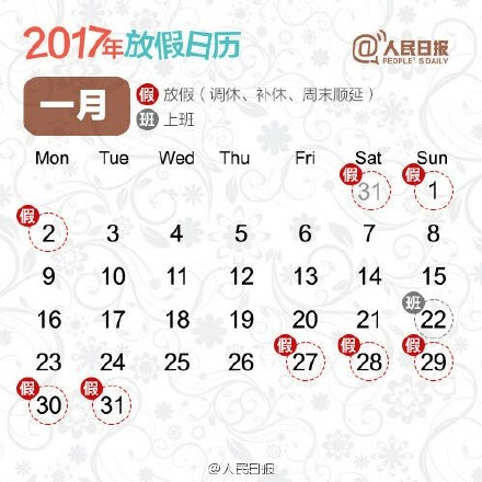 国务院办公厅12月1日发布《国务院办公厅关于2017年部分节假日安排的通知》,全文如下: