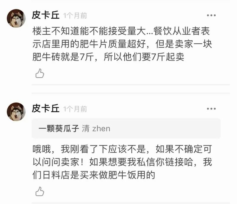 结合处在青春期比肥牛本牛还能吃的我弟的食量,七斤肥牛不在话下,我立刻意识到,这条路子行得通。皮卡丘在下面放了链接,我激情下单。(为了防止是广告,我就不放了)TA在那栋楼的所有发言我都详细阅读了,唯独这一条我没有看到。