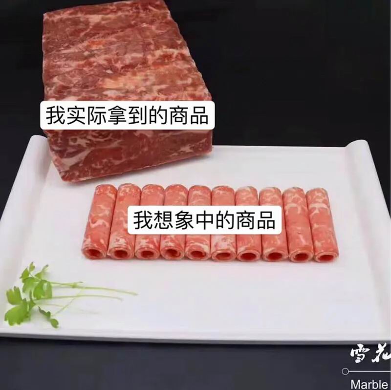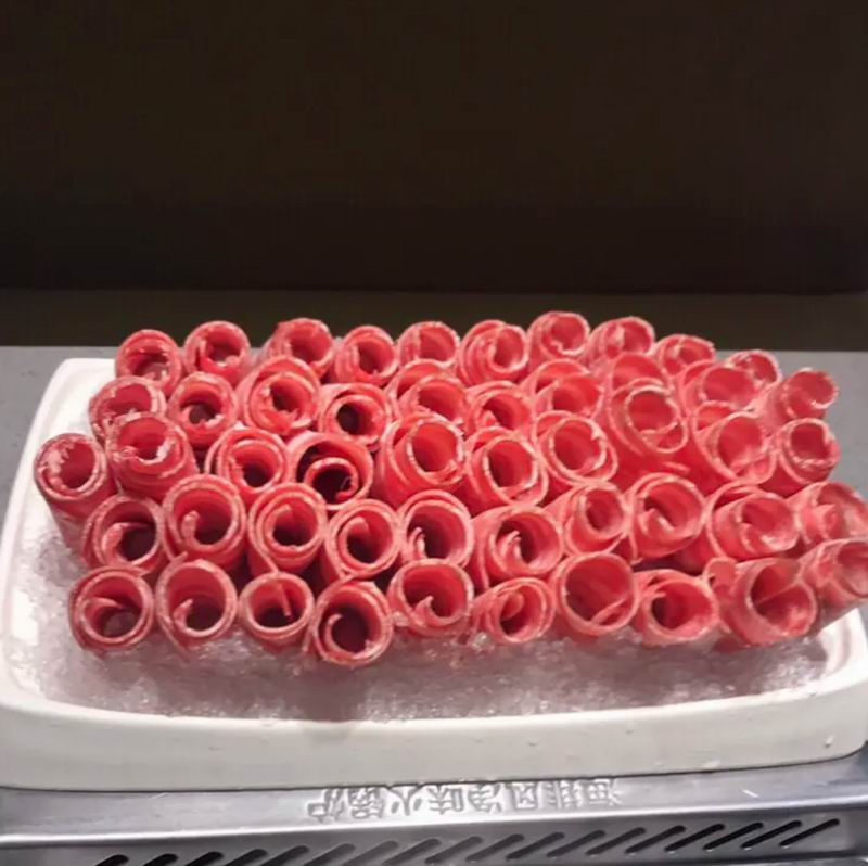 我又想到了楼下的潮汕牛肉火锅店,也给他们致电,然后得知潮汕牛肉火锅店的牛肉都是手切的新鲜牛肉,没有冷冻肥牛,自然也就没有那个大型生产工具。