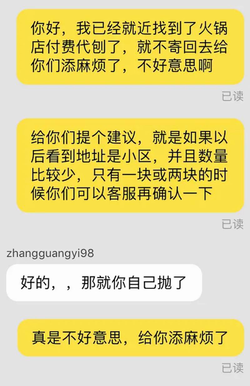 那天晚上,和我一起紧张的,还有那位可能面临退货的淘宝店家,海底捞给予了我们两人一次"赦免"。