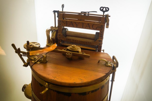 1911.年,第一款洗衣机诞生,名为Maytag.Electric.Motor电动马达洗衣机。那时候的洗衣机,嗯,真像蒸笼。