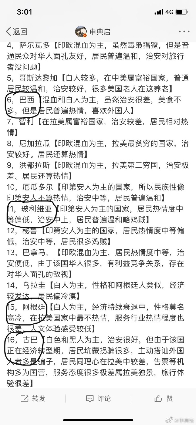 然而,如果你用另一套标准去进行排行,你可能会得出完全不同的结论。圈出几个最有代表性的国家,说说这几个国家的特点。