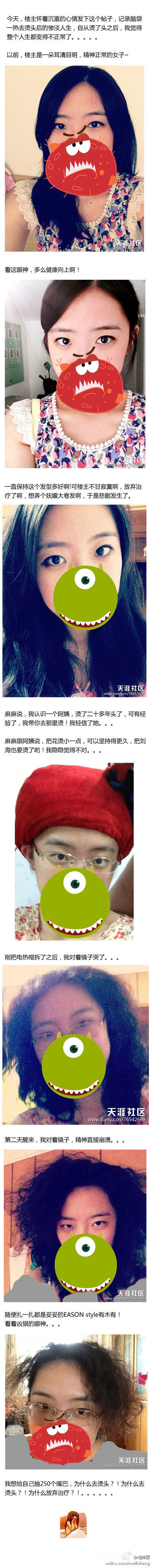 #请珍爱生命远离烫头#妹子告诉大家请珍爱生命,远离烫头!纪录其放弃治疗去烫头后的不规则人生,有图有真相。。。真是no zuo no die啊。。。话说我蠢蠢欲动想烫头的心又平静了,,,要说烫头的典范那还得是于谦老师啊,哈哈哈
