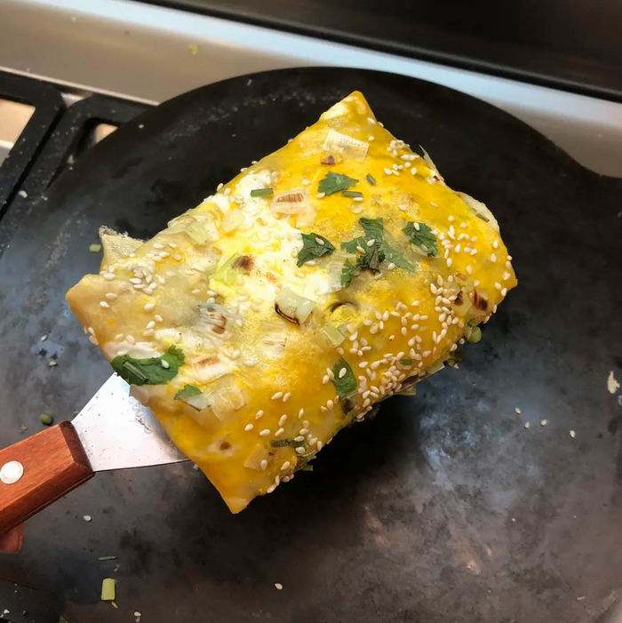 练习了好久,现在终于能摊出稍微像样一点的煎饼了。工具一套70多吧,至今为止做了十几个吃了,感觉已经吃回本了🤣