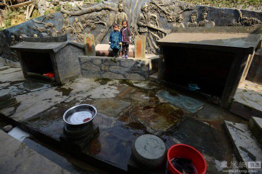 贵州省黔东南苗族侗族自治州从江县占里村位于群山之中,被称为"中国人口文化第一村",寨里98%的家庭都是一儿一女。当地人说是因为一种名为换花草的草药。建寨700多年来,代代流传下来的寨规森严地写着:不许外娶、不许外嫁,以保守换花草的秘密。据了解,占里村的祖先吴公力提出了要控制人口增长,召集村名订立寨规:一对夫妇只允许生两个孩子,谁多生就依寨规进行处罚,严重超生的,永远逐出寨门,不得再回到这里居住。图为村中的两口水井,一口是榕树生男井,一口是榕树生女井。