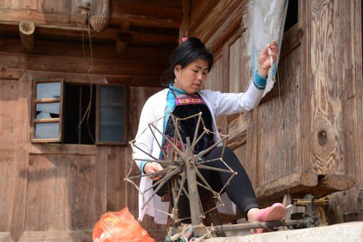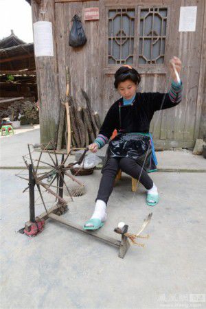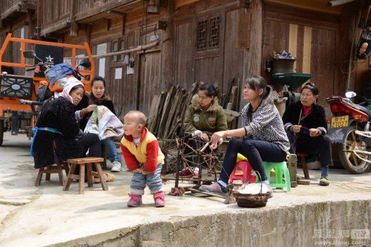 在占里侗寨,几乎98%的家庭的孩子只是一男一女,很少有双男双女的现象。这里面有一个近乎神话的秘密隐藏在里面,那就是用一种叫做"换花草"的草药来平衡胎儿的性别。在整个侗寨占里,并非每个人都知道"换花草"的庐山面目,能有资格知道的也就只有一人,这个人被寨里人称为"药师"。并且"药师"通常都是传女不传男的。据有关资料记载,这种现象是自占里人迁来此地时开始的。图为占里村的侗族妇女在纺纱。