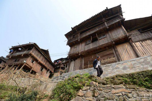 在占里村,还有一条规定很特别:女儿继承棉花地,儿子继承稻田。此外,父母还要给女儿一份"姑娘田",谁家若不给女儿"姑娘田",不仅会遭人取笑,还会被男方退婚。在老人的财产继承上,山林、菜园实行男女对半分成,房基、家畜归儿子,而金银首饰、布匹让女儿带到夫家。因此在占里村,中国的传统"重男轻女"观念并不存在,而是真正的男女平等。图为村中的妇女小孩在村中玩耍,有的则在织布纺纱。