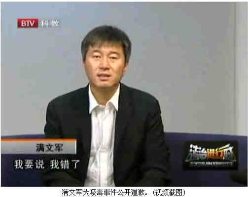 满文军涉毒被拘后,一直未露面对公众做出交代。今天(8日)中午12:00,北京电视台科教频道《法治进行时》栏目将播出有关满文军涉毒的节目,满文军本人现身节目现场,向全社会公开道歉,节目中,满文军说:对喜欢我的朋友说声对不起。