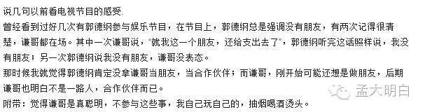 于谦后来也不再说他们是朋友,他说是上下级关系,他把自己当德云社的员工而不是元老,一个解甲归田的范蠡,越王勾践还好意思寻他错处吗?