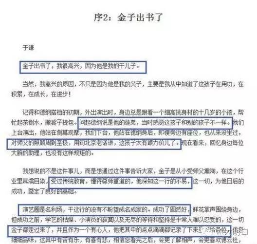 于谦其实很喜欢曹云金,郭德纲的所有徒弟都是于谦干儿子,但人的感情会有亲有疏。曹云金那本自传里也有于谦的序。
