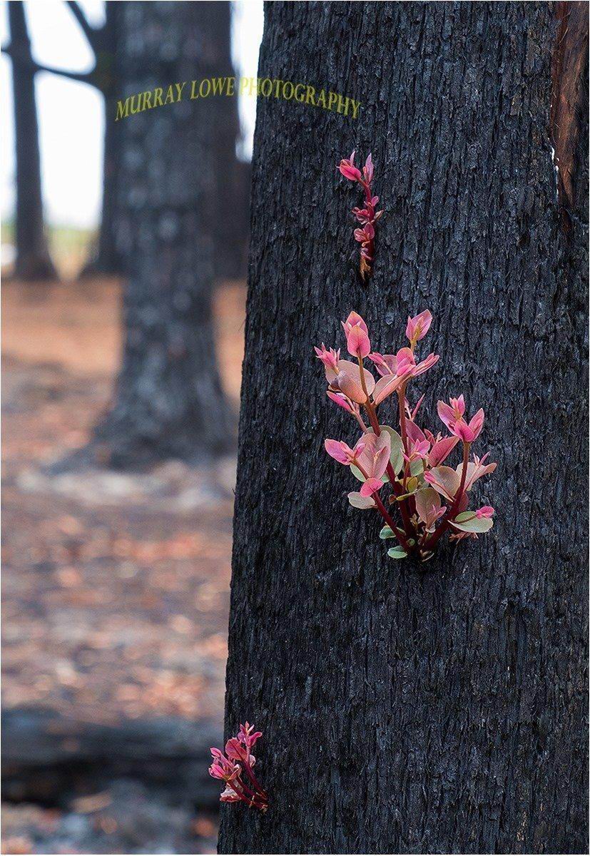 桉树要是人类的话,大概是最“自私”的。网友Murray Lowe拍到火灾后的桉树已经焕发生机。它们就是这样,先自爆烧死其他树种,自己的芽得以萌发长大,抢占地盘。富含油脂的树皮像自爆夹克,周而复始。看热闹的人类说,这是大自然的力量