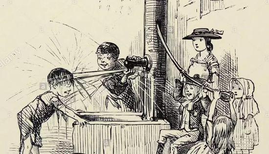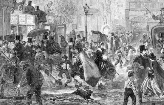 马车在肮脏的街道飞奔,马粪四处飞溅,用抽水马桶的人们把粪便通过露天简陋的下水道排入泰晤士河;