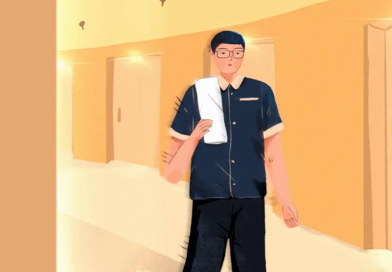 同宿舍的老陈比我大三岁,是另一个组的组长,算上实习期,他已经在酒店工作三年,是客房部元老级人物。老陈不爱说话,无论什么时候见到他,他肩膀上都搭着一块白抹布,脚踩一双已经变形的黑布鞋,来也匆匆去也匆匆。