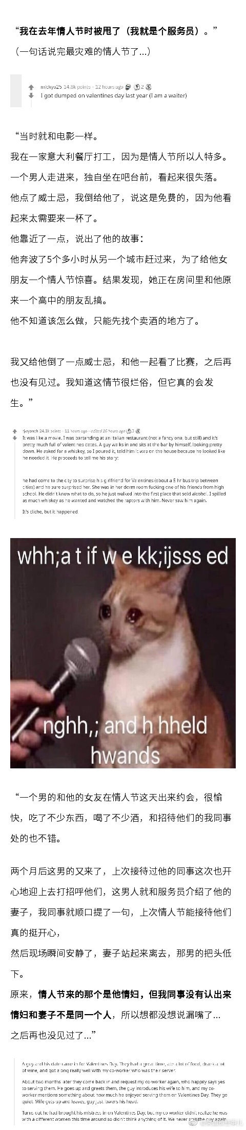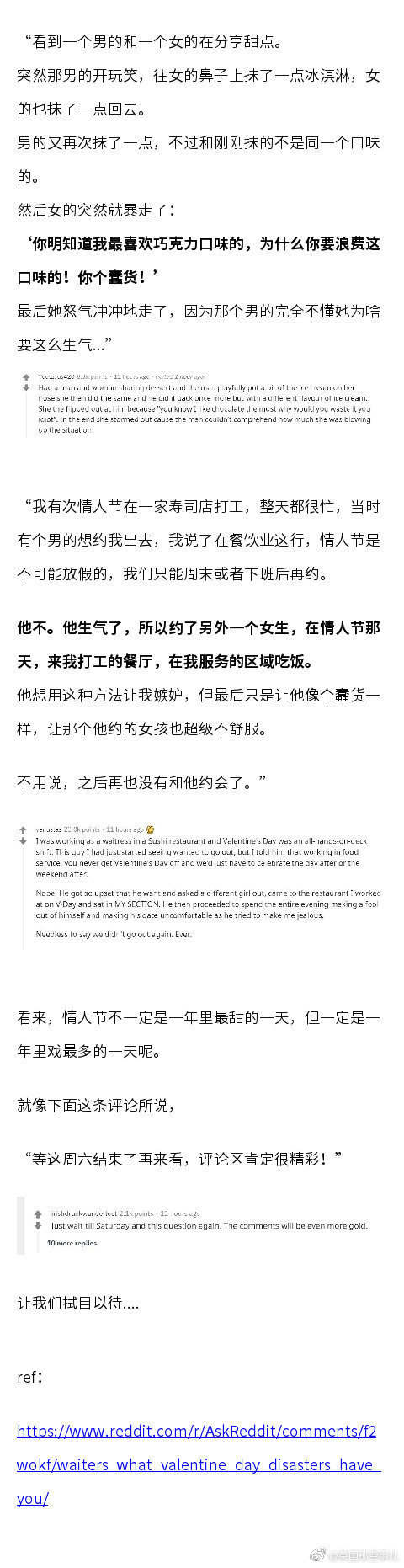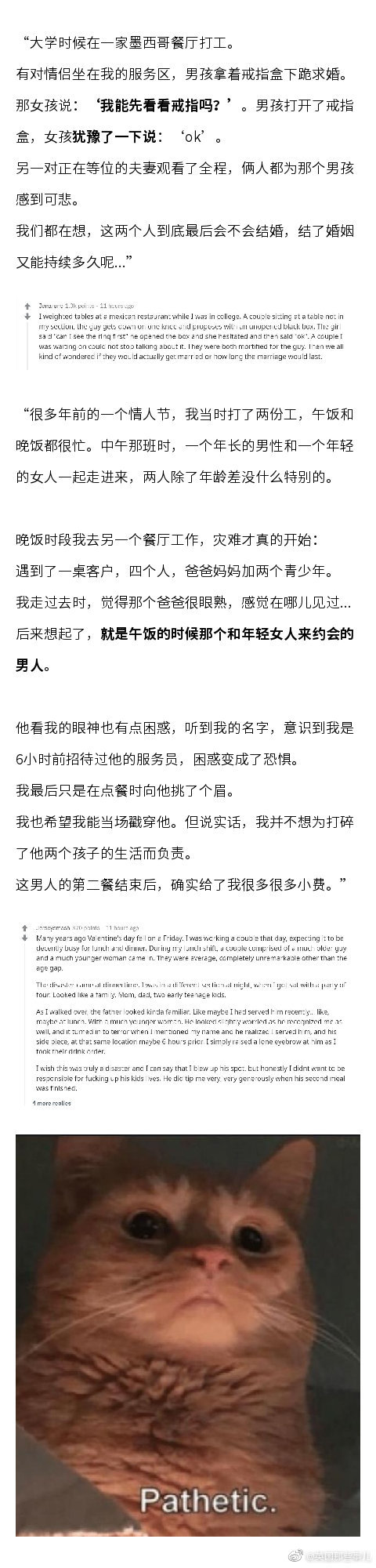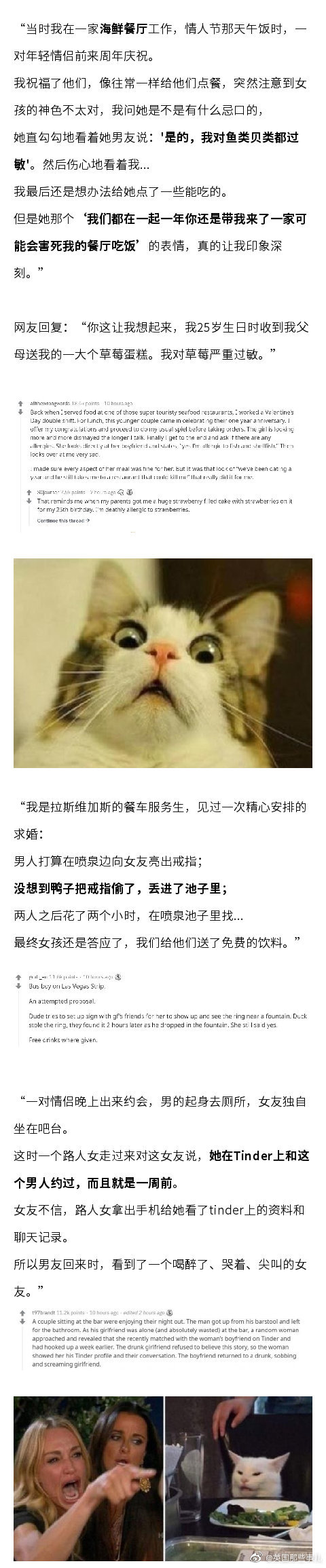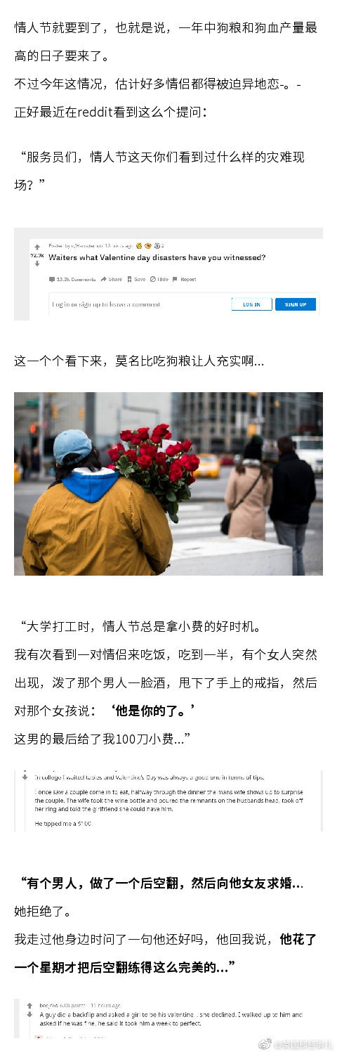 情人节这天多的不一定是狗粮,还可能是狗血……餐厅服务员们分享自己亲眼目睹的情人节灾难现场,看得人莫名充实呀.