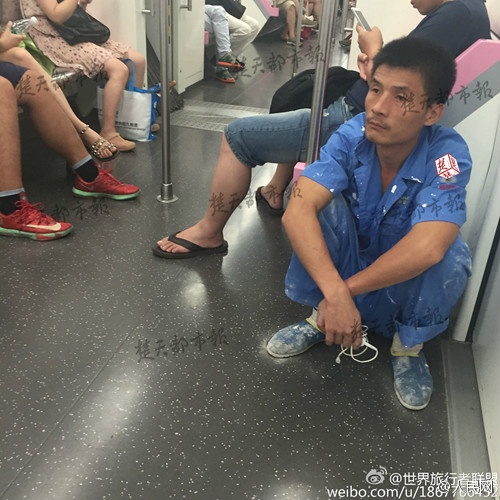 24日,在武汉地铁2号线上,一名装修工人模样的小伙蹲在地上,哪怕身旁几次出现空座位,他也不去坐。这一幕被市民看到并发在网上,直呼“好让人心疼”。(楚天都市报)