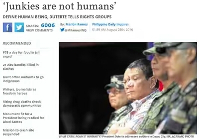 菲律宾问询者报报道杜特尔特回应人权指责:垃圾并非人类