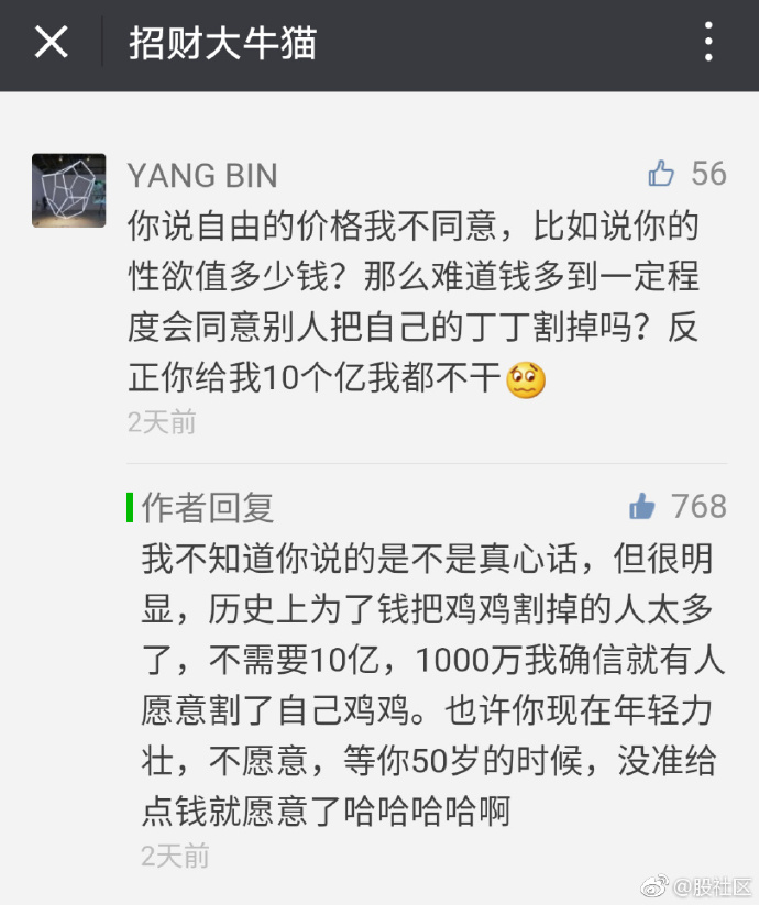 我直接问他10亿鸡鸡割不割,他为了面子肯定说不割,但如果他正打算和老婆性生活,我突然出现在他面前,手提47万现金,大喊一声stop,这一炮憋打了,这钱归你,我相信没几个正常人会拒绝的。