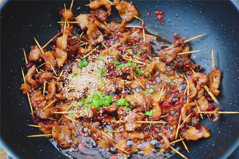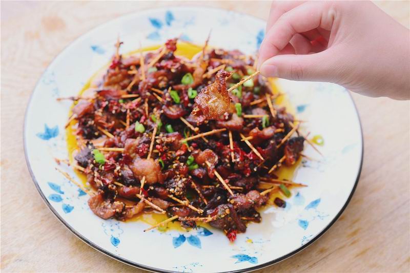 香辣牙签肉,慢慢咀嚼着香。很适合宵夜下酒的一道菜,家里可以常备。