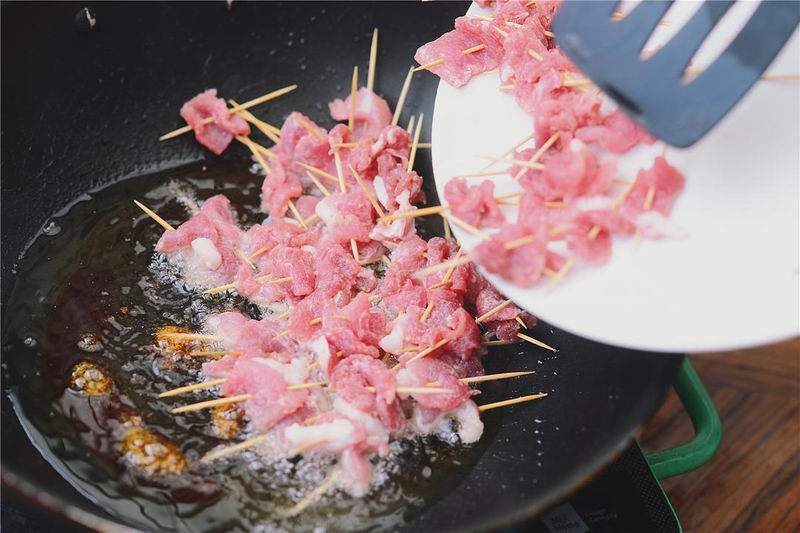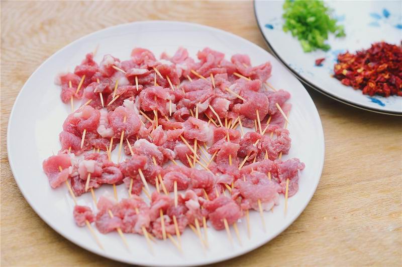 3用牙签将腌好的肉串串起来