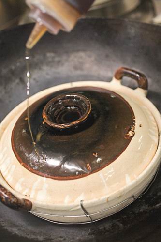位于四川盆地西部的雅安,有一地叫荥经。县城其貌不扬,却因当地的一种黄白色黏土而显贵百年,当地人管这种黏土叫"白善泥",它土质极为细腻,且黏性超强。用这种黏土制造的荥经黑陶砂锅闻名于世。但黄白色的黏土,到底是如何做出"黑陶"的?在荥经的一条小街上,我们便能知道答案。街上生产黑陶砂锅的小厂子有十几家,制造者擅长将白善泥晒干碾成粉末,按比例与煤渣细末混合,制成"黑砂",黑砂泥坯被放入1200℃的窑里,烧制完成后,再撒上含油的杉木粉屑,再覆盖一层面炭,这两道工序被谓为"淬火"和"上釉"。上了釉的砂锅以红、银灰、黑色为主。美食家去雅安寻"砂锅雅鱼"吃,其独特的盛装容器正是它。