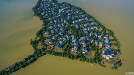 2016年7月7日,武汉遭受暴雨袭击,汤逊湖水猛涨,被称为武汉最奢华的私家领地-长岛别墅区被洪水围困,与外界唯一连通的道路被淹没,长岛周围的湖景别墅也被泡在水里,居民只能依靠小艇出入。(网易)