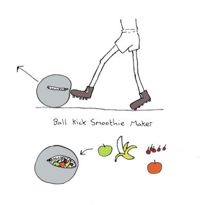15.踢球式奶昔制作器,只需将原材料放进装置直至踢烂即可