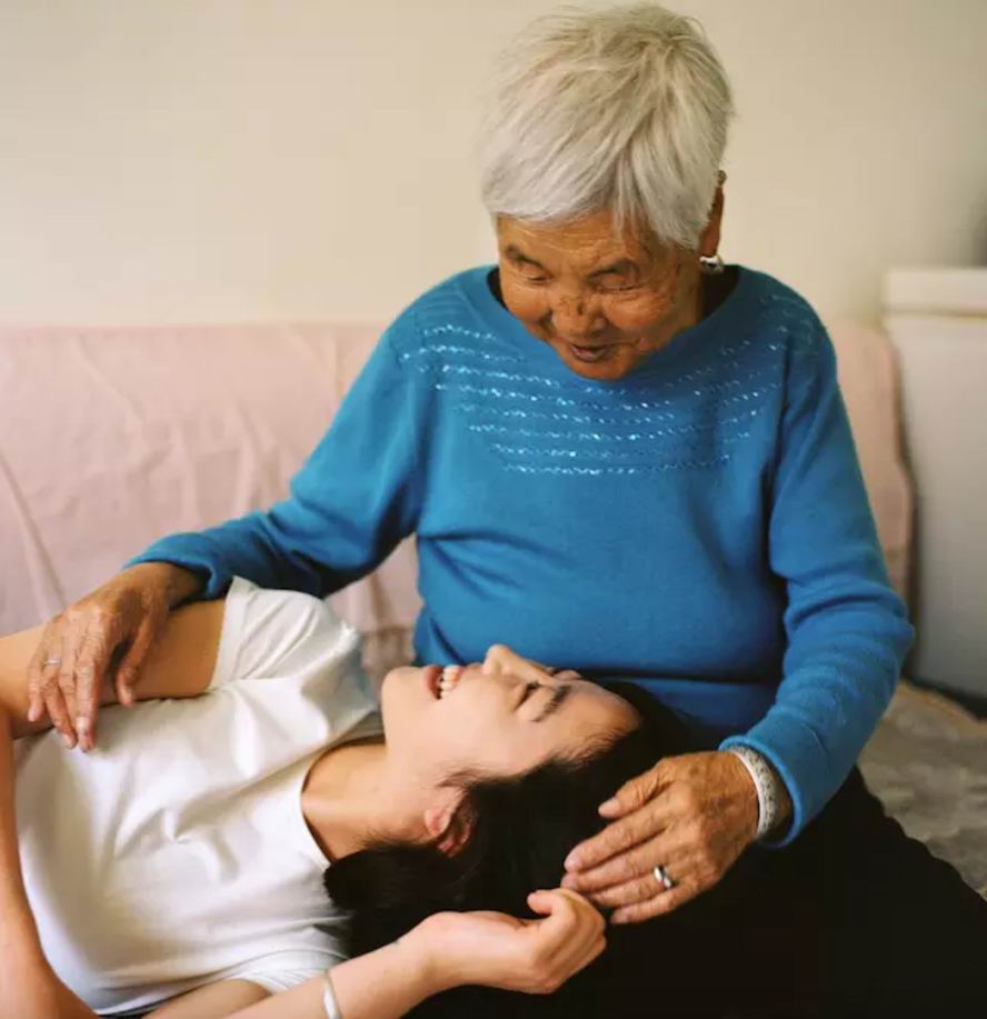今年五月,王玮给我和我姥姥拍了一组。我和姥姥感情很好。我姥姥有个毛病,眼睫毛往里长,我们全家人只有我能给她薅出来,我每周都去给她薅。之前我没走,一个很重要的原因也是因为放心不下她。不过她去年开始莫名其妙就好了。