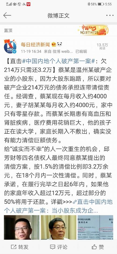 这就是利益共同体系下双方的“妥协”。类似的情况其实不需要法院就能达成。所谓的“中国个人破产第一案”就是个舆论噱头,讲穿了很简单。