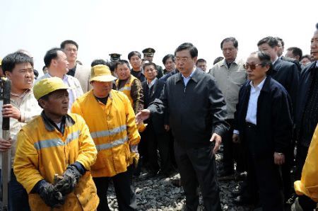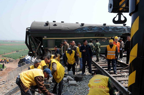 4月28日凌晨4时41分,北京开往青岛的T195次列车运行到胶济铁路周村至王村之间时脱线,与上行的烟台至徐州5034次列车相撞。已造成70人死亡247人受伤。胡锦涛、温家宝就胶济铁路重大事故作出重要批示,指派国务院副总理张德江立即赶赴现场,指导救援善后工作。