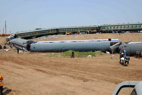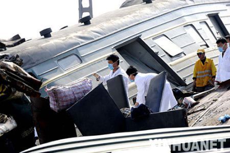 28日凌晨4时41分左右,由北京开往青岛四方的T195次客车通过胶济铁路王村站,在铁路一个拐弯处,这列客车车尾前10-17位脱线、颠覆,造成由烟台开往山东菏泽的5034次客车与脱线、颠覆车辆相撞,5034次客车机后1-3位及机车脱线、颠覆。